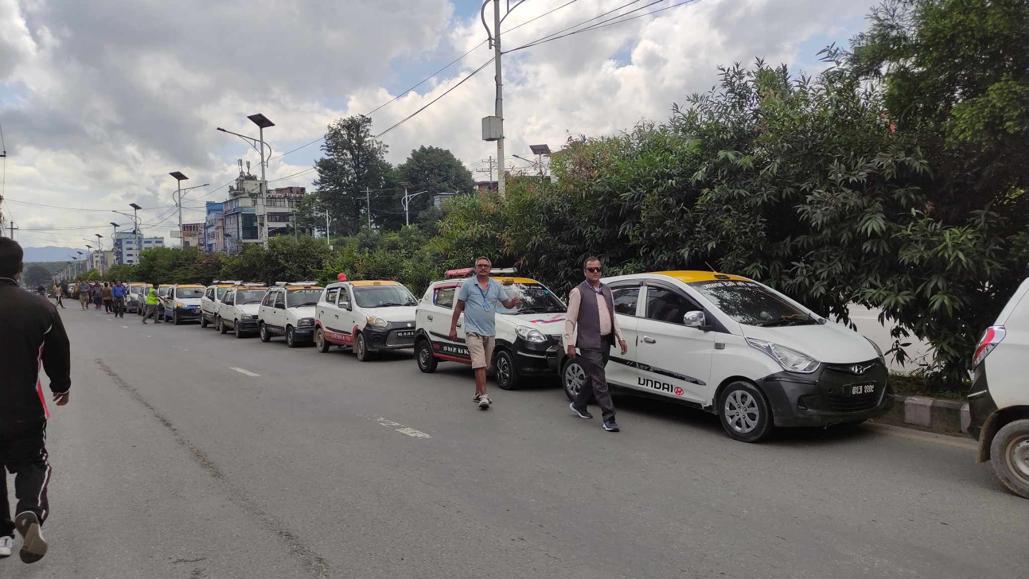नेपाली भूमिमा काम गर्ने भारतीय गाडीलाई निषेध गर्न माग गर्दै ट्याक्सी चालकहरु आन्दोलित भएका छन् ।
