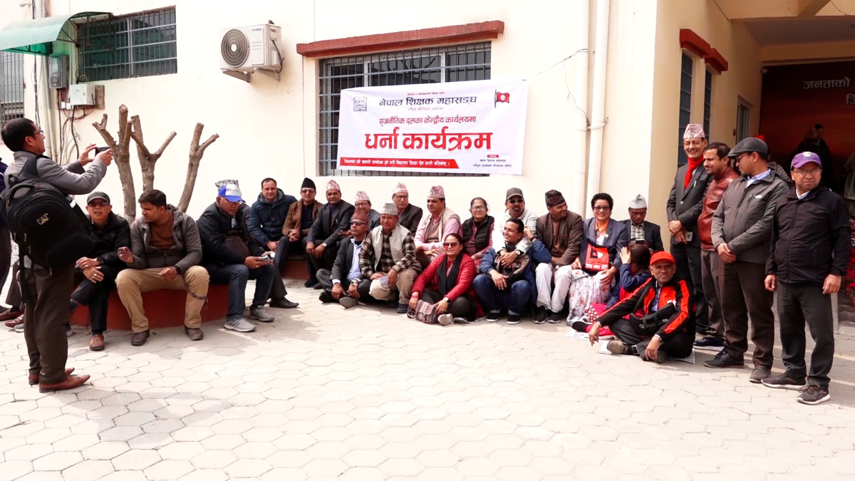 शिक्षक महासंघले नेकपा एमालेको पार्टी कार्यालयमा धर्ना दिएको छ ।