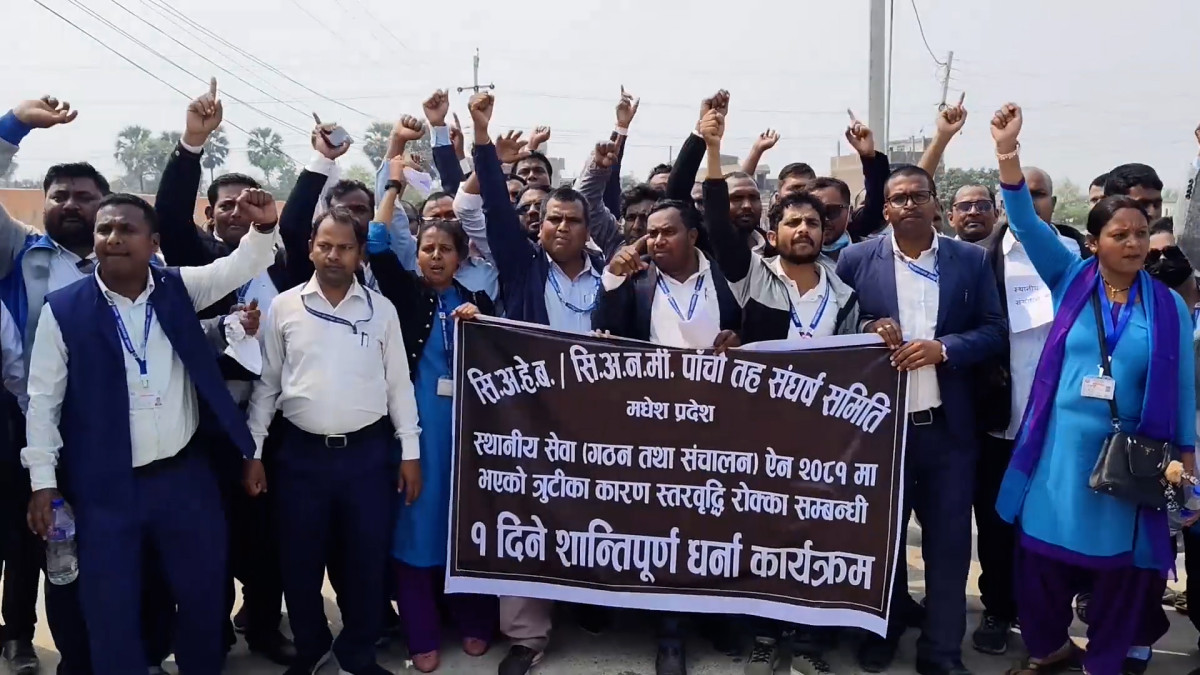 मधेस प्रदेशमा कार्यरत सिनियर अहेब र अनमीहरू स्थानीय सेवा ऐन, २०८१ को त्रुटीका कारण आफ्नो स्तरवृद्धि रोकिएको भन्दै आन्दोलनमा उत्रिएका छन् ।