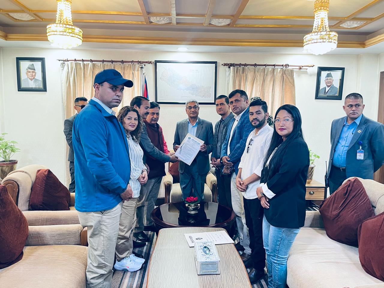 नेपाल पत्रकार महासंघको टोलीले गृहमन्त्री रमेश लेखकलाई ध्यानाकर्षण पत्र बुझाएको छ । महासंघका महासचिव रामप्रसाद दाहाल सहित ८ जनाको संयुक्त टोली चैत १५ गते तीनकुनेमा भएको हिंसात्मक प्रदर्शनका क्रममा सञ्चारमाध्यम र सञ्चारकर्मीलाई निसाना बनाएको भन्दै सरकारलाई घटनाको सत्यतथ्य छानवीन गरि आवश्यक कारवाही गर्न गृहमन्त्री लेखकलाई ध्यानाकर्षण पत्र बुझाएको हो ।