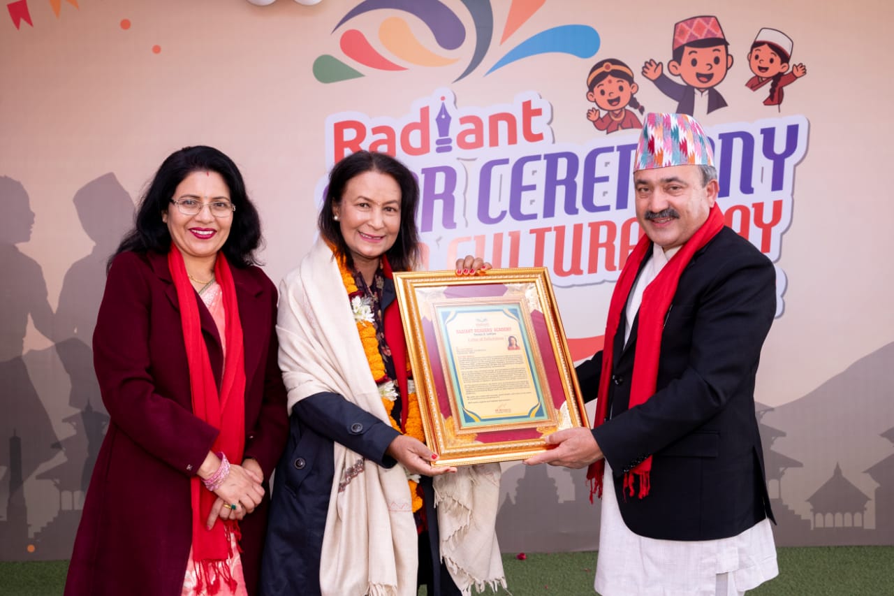 काठमाडाैँ । ललितपुरको सानेपास्थित रेडियन्ट रिडर्स एकेडेमीले मंसिर १४ गते (आइतबार) विशेष समारोह आयोजना गरी ‘रेडियन्ट स्टार सेरेमोनी कम कल्चरल डे २०८२’ कार्यक्रम सम्पन्न गरेको छ।